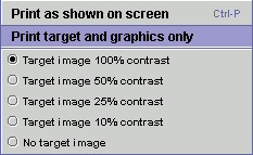Once the shell and test conditions have been entered the header panel can be hidden from view to make available a larger screen area for working with the target image. A hidden header panel will still be shown on hard copy print-outs when using the Print as shown on screen option. |